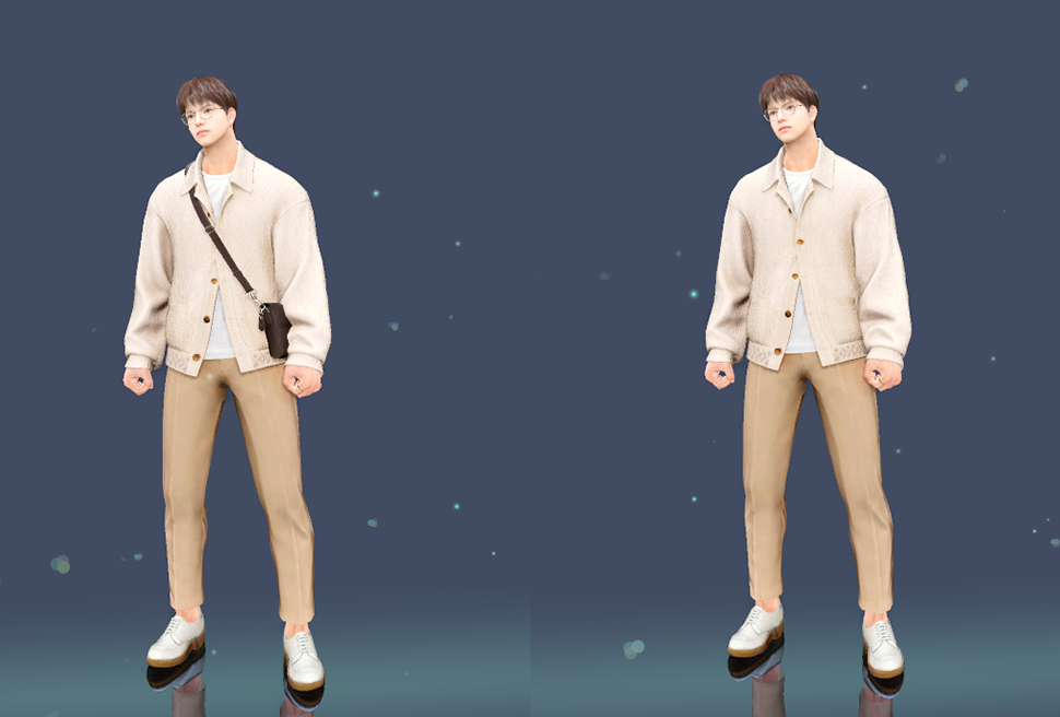 - 남성 클래스는 설렘(남), 설렘 헤어 & 귀걸이(남), 설렘 안경(남)을 착용할 수 있습니다.