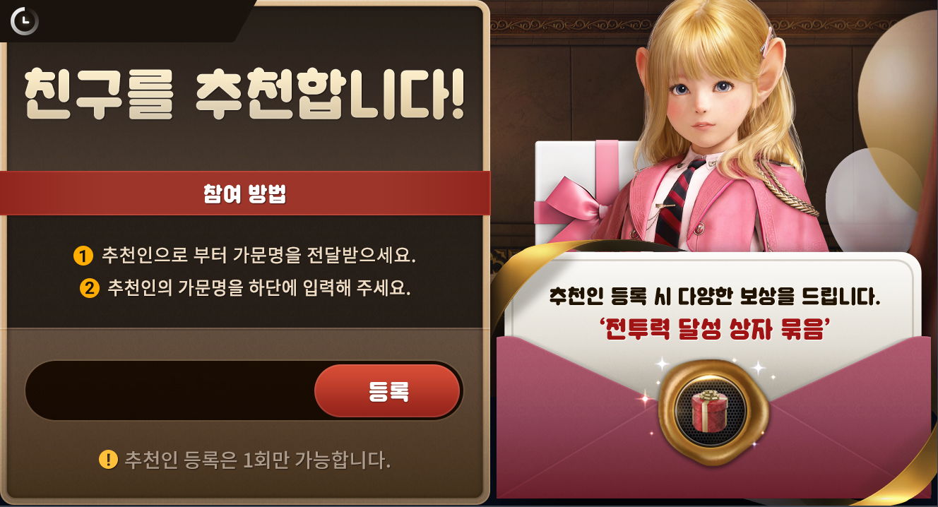 같은 서버 모험가님을 추천인으로 등록하세요!