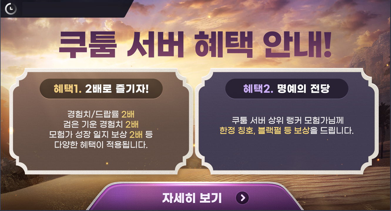 쿠툼 서버에서는 2배로 즐길 수 있습니다!