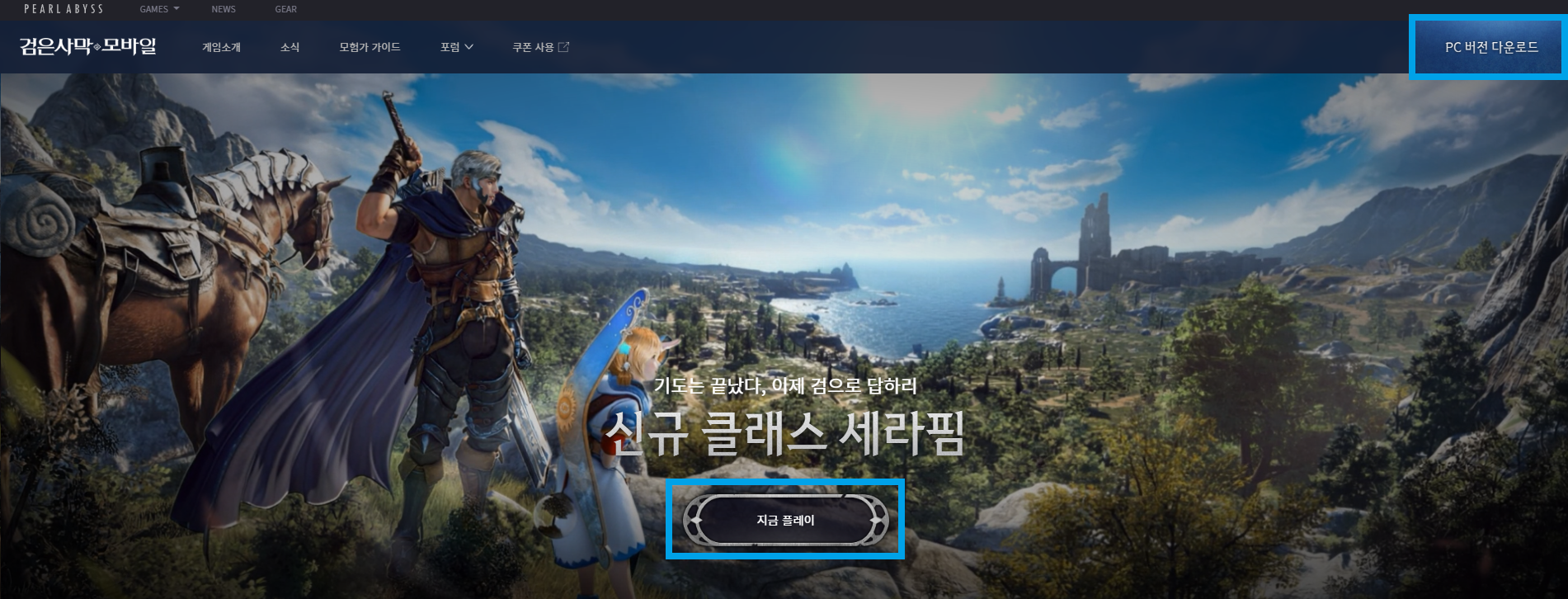 먼저 PC 클라이언트를 설치하기 위해, 검은사막 모바일 공식 홈페이지에서