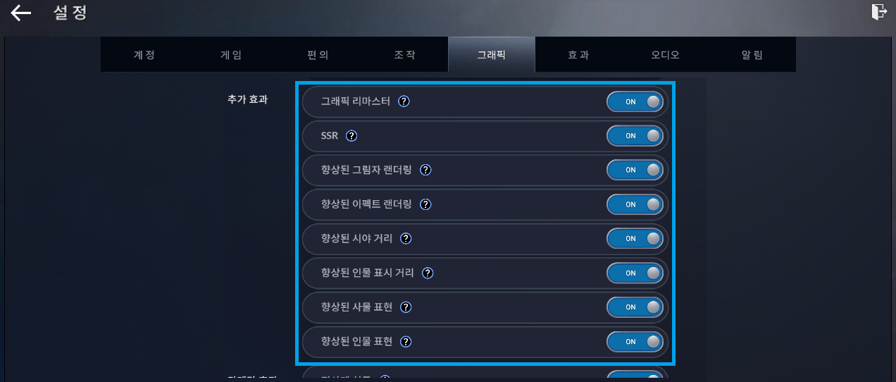 '그래픽 리마스터'를 활성화해 보았는데요.