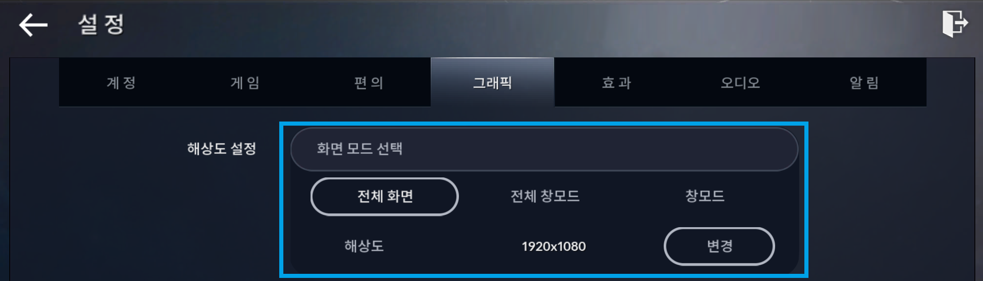 게임 [설정 > 그래픽] 메뉴에 들어가니 화면 모드에