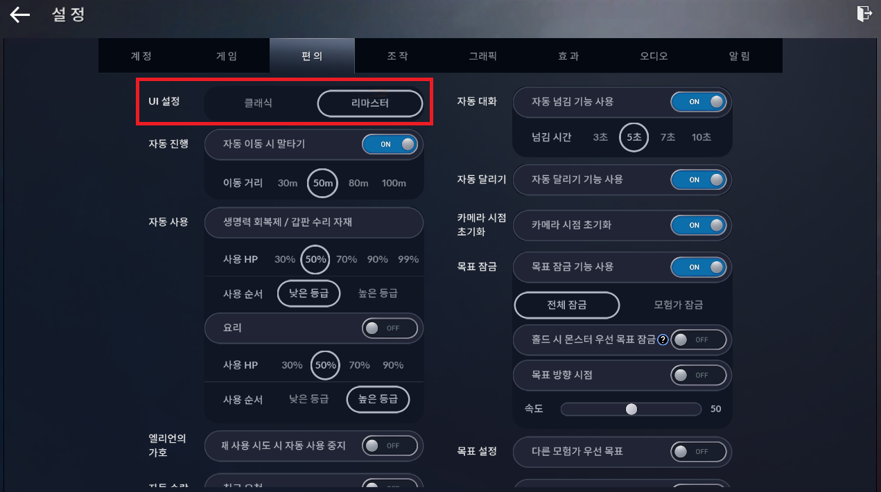 (하지만 아직 리마스터 버전의 UI가 익숙하지 않은 분들은