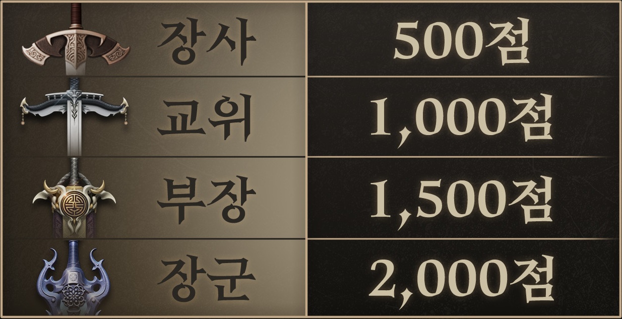 3월 3일(화) 업데이트부터는 장사 ~ 장군 등급을 한 번 달성하면,