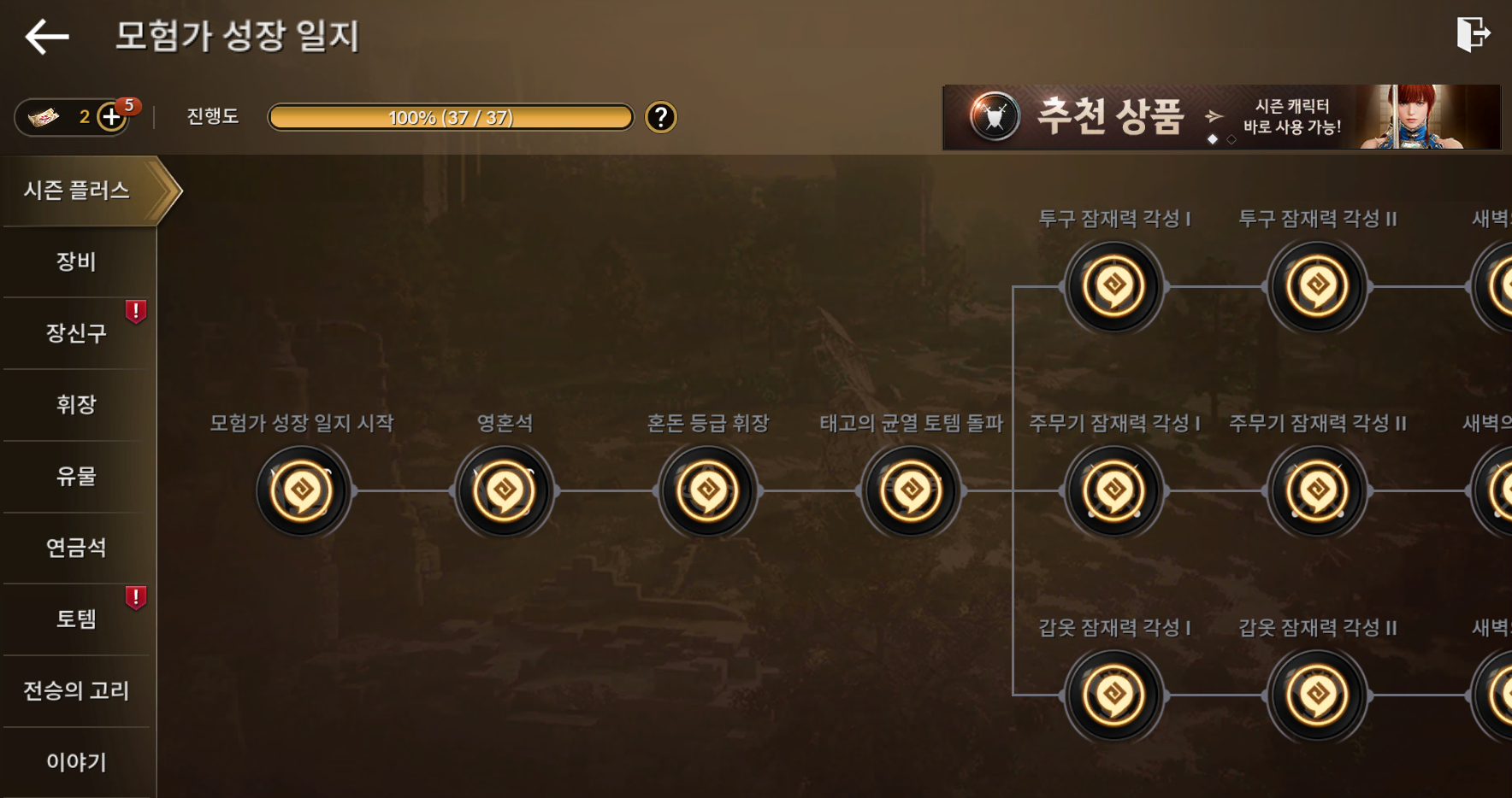 '모험가 성장 일지'에 '시즌 플러스' 카테고리가 새롭게 생겨났더라고요!