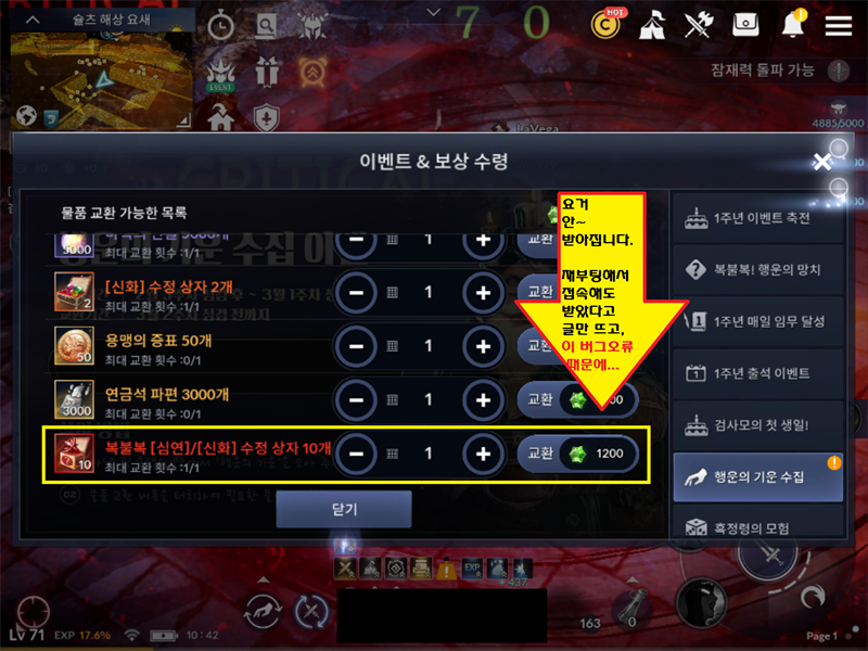 펄어비스 관계자님들 행운의기운 1200개 교환할수 있게 해주세요