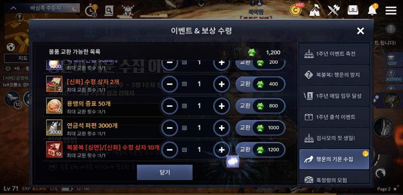 - 행운의 기운 수집에서 이벤트 보상 교환 시 "더 이상 교환할 수 없습니다" 알림과 함께 교환이 불가능한 현상(3/4, 15:54)