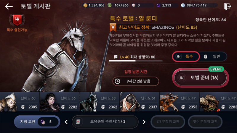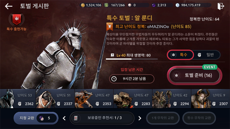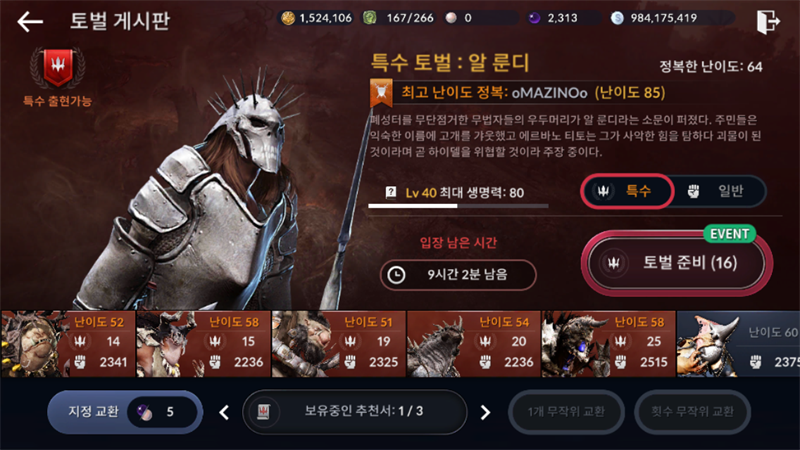 얻은 특수토벌권 : 199개
