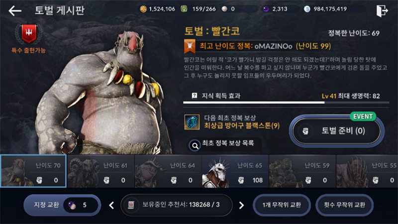 사용한 토벌권 : 138,267개 (46,089회)
