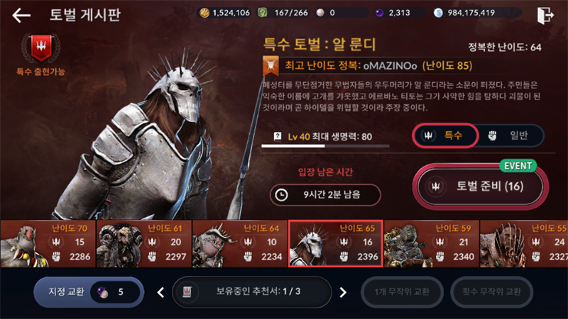 토벌권 694.927개로 특수토벌권 1개를 얻을 수 있습니다.