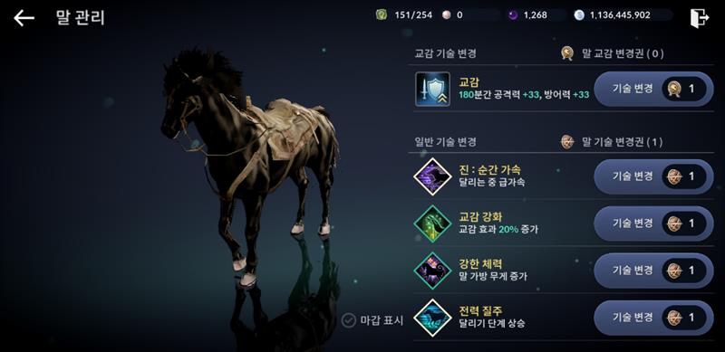 1마리가지고안됨 적어도 2마리이상보유해야됨 펄없이시키들 얼마안지나면 말배합가지고 장난칠걸 대비해야됨... 그리고 교감이 가급적이면 공높은걸로 추천함.. 난 공42 방 24인가? 임 필드에가면 버프가 공50에방 얼마드라? 자세히 안봐서 가물거리네...ㅋㅋㅋ