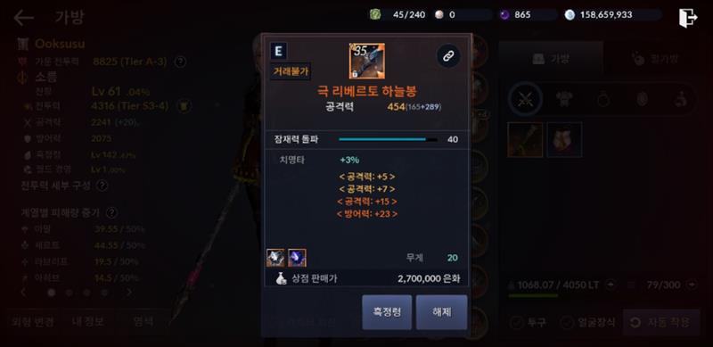 무기랑 보조무기는 극으로 맞췄고