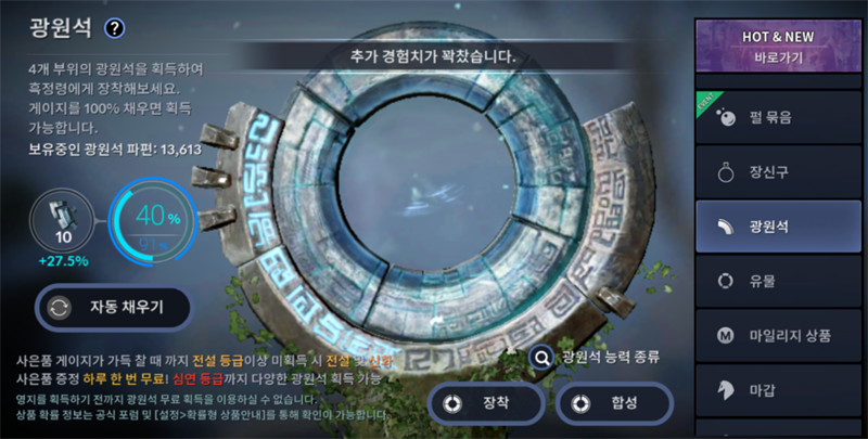 광원석 경험치