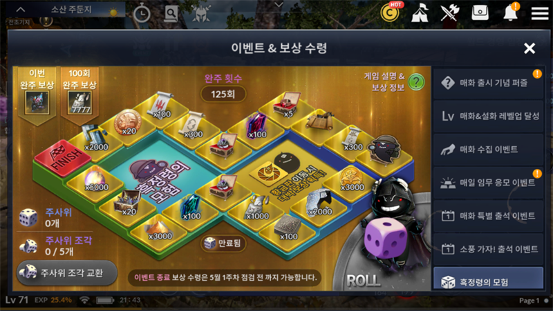매화 65렙 달성, 주사위 안해도 되니까 편안~~
