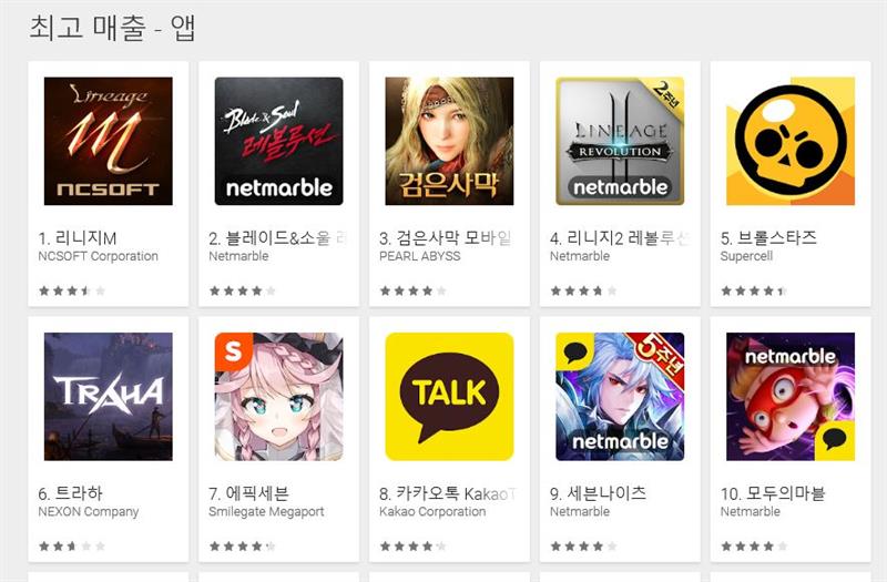 옆동네 신작 매출순위 ㅋㅋㅋㅋㅋㅋ