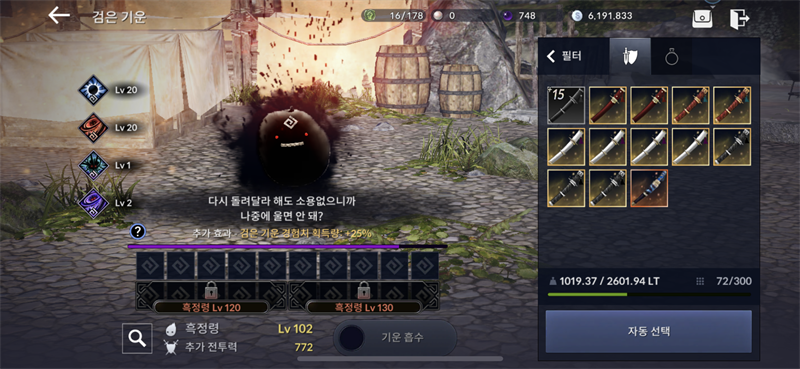 장비 노란거는 흑정령 주면 되나요???