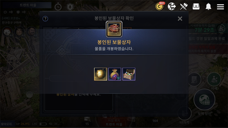 보물상자는 월경 밖에서 까셔요. 마을 무역상인한테 가면 깔수 있어요.