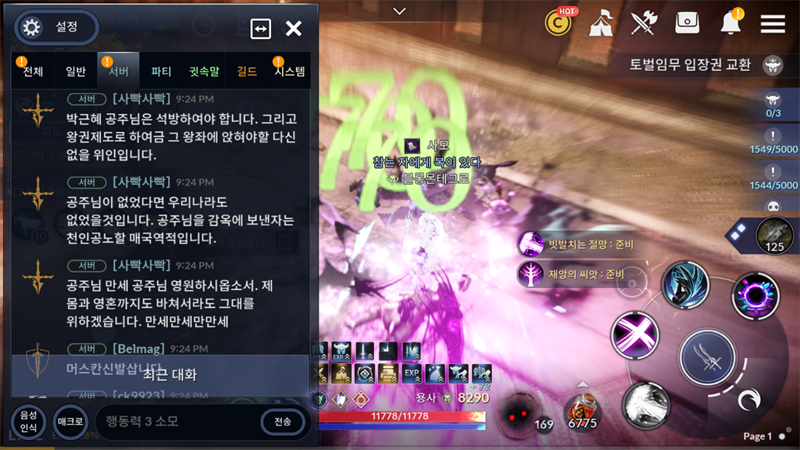 게임에서 박근혜 옹호글도배하는놈
