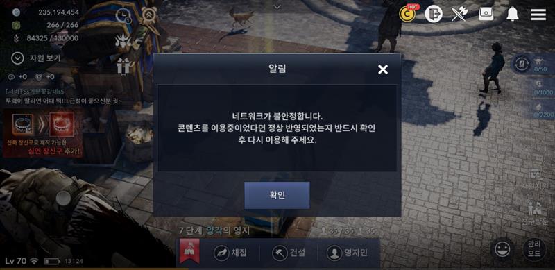 영지밖으로 못나가면 게임 종료창도 못봐
