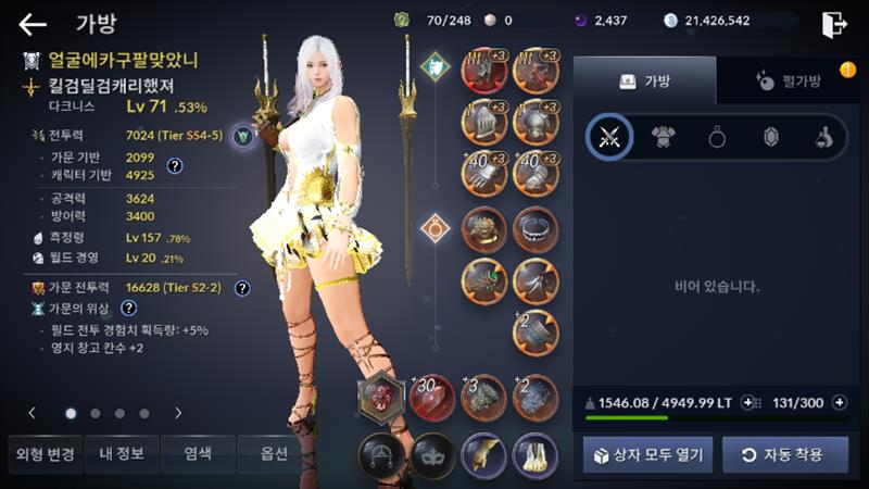 지금 상황이 요런데 조언 좀 오지게 구하고 싶습니다. 장신구 각성은 돈 모으는대로 할 겁니다!