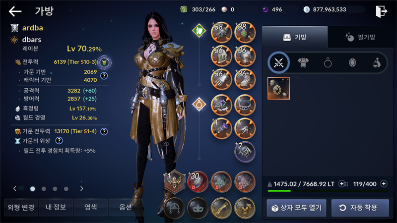 팔찌 신화 5공명 받으시고 장비는 보스 제작 까지 존버 타시면 될거고 강화 쭉 하시면 되겟네요