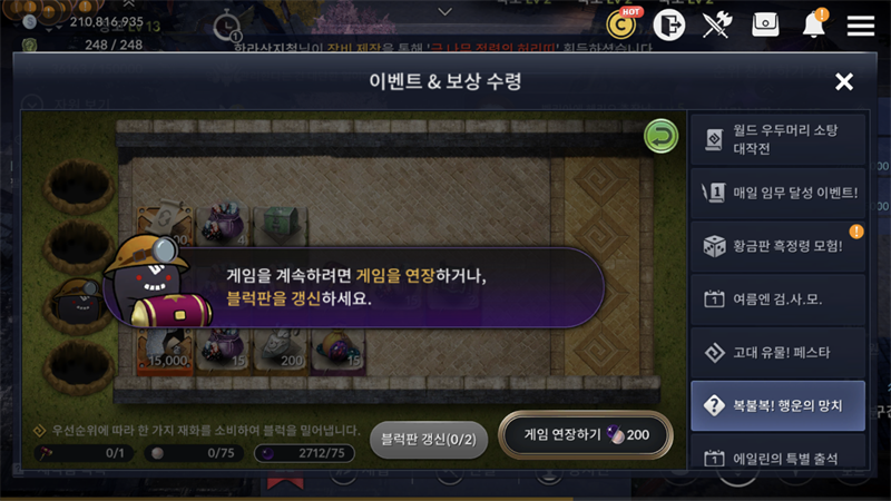 연장해서 얻을 수 있는 템 가치가 200펄 이상임