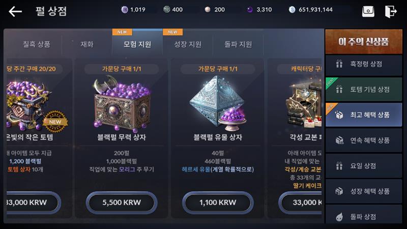 계승상점때는 주간구매로 바꿨다가 이번에 가문당 구매로 바꿈