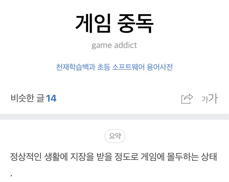 게임 중독과 질병을 헷갈리는 분있는거 같아서