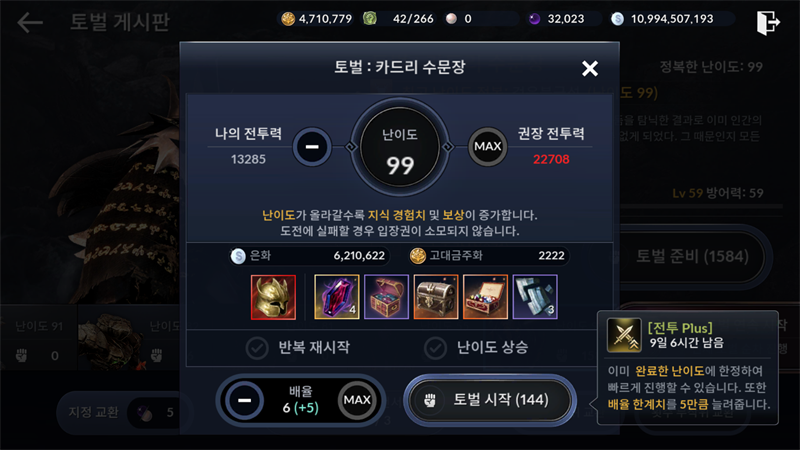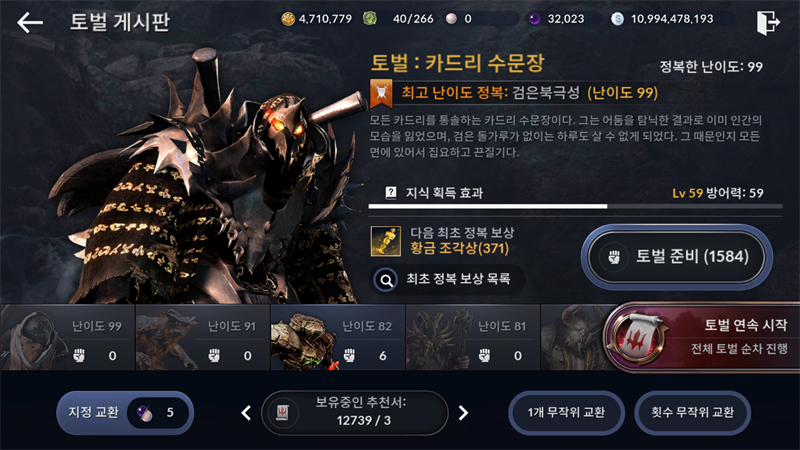 카드리 99단계 돌파했습니다