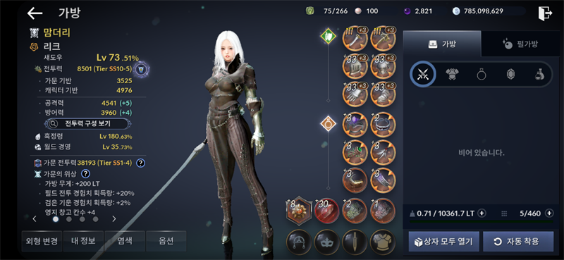 메인퀘 하다보면 펄가방 캐릭가방에 무게 들어있어요