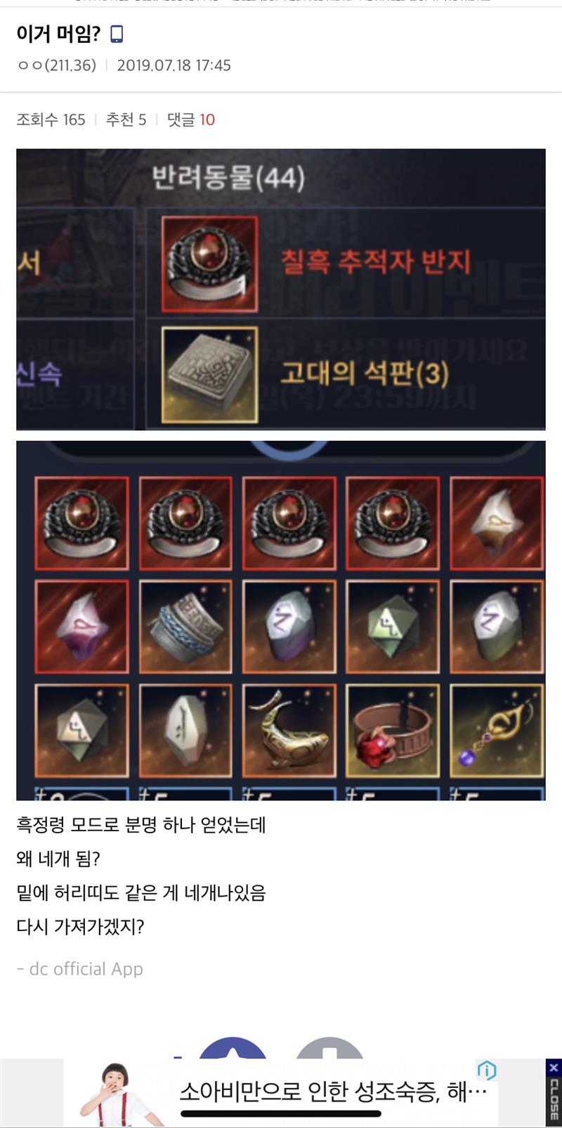 재접속시 1개로 뜨는데 인벤 들어가보면 여러개 들어와있음