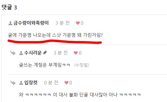 4. 블화 단골 대사 - 가문명 나오는데 스샷 가문명 왜 가린 거임? 이건 뭐 ㅋㅋㅋ