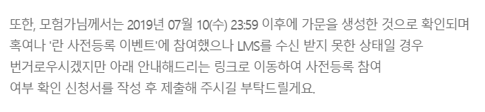 란 사전예약 보상이 안들어와서 문의 넣었는데 2019년 7월 10일 이후에 생성된 가문이라는데