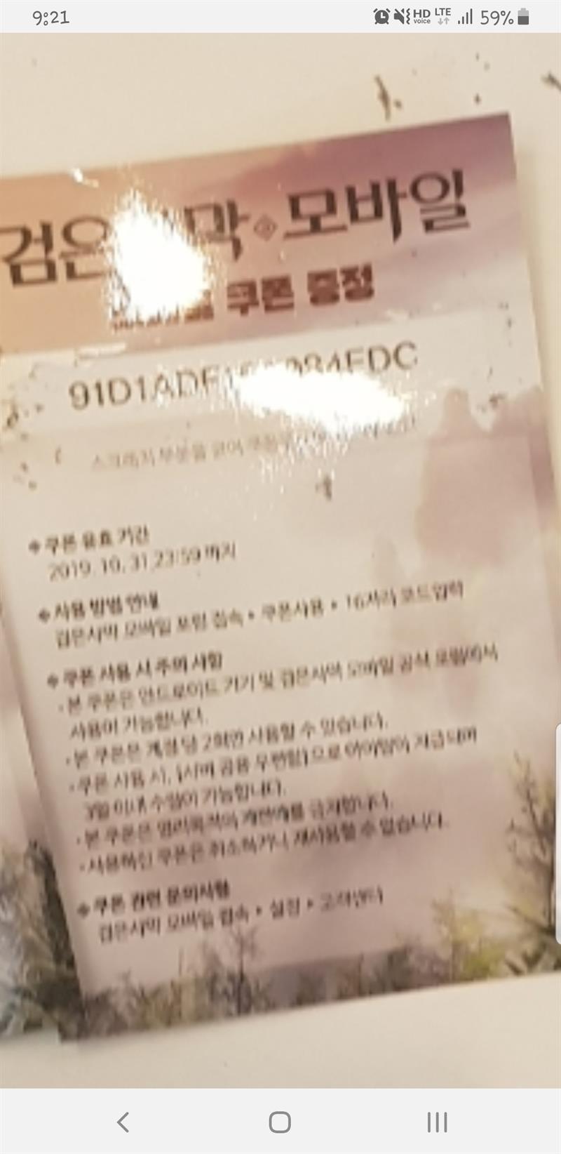 닭집 사장님이 쿠폰 안보내주셔서 사진으로 쿠폰 받았는데