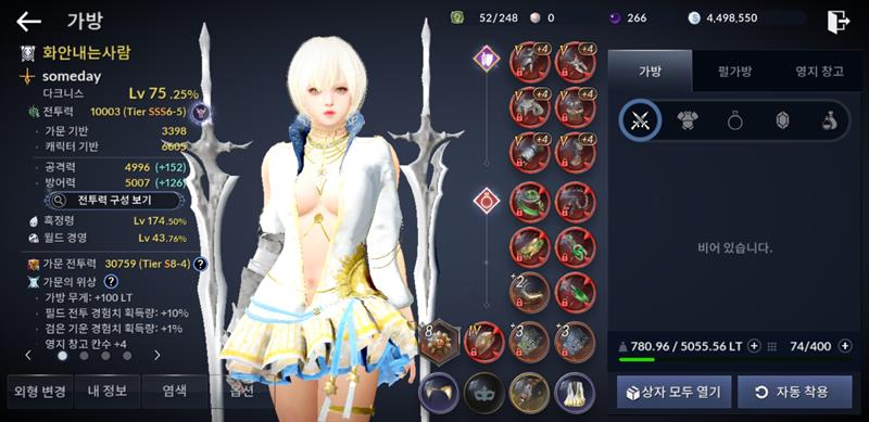 만렙67일때 템 다 팔고 접었다가 란 이뻐보여서 복귀했는데