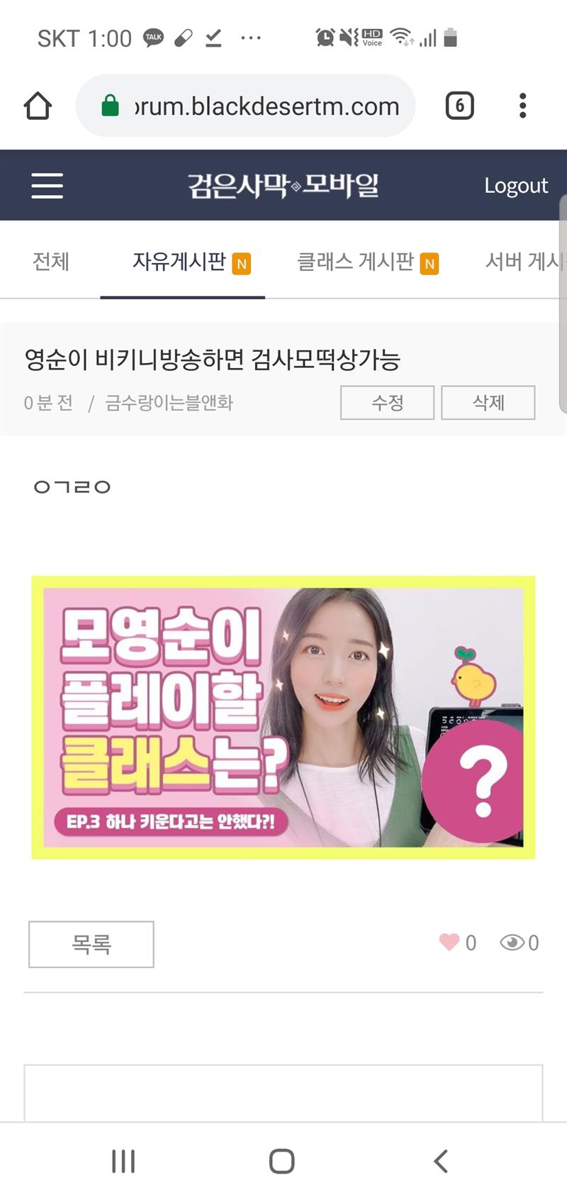 영순이 눈팅중인듯 글삭함