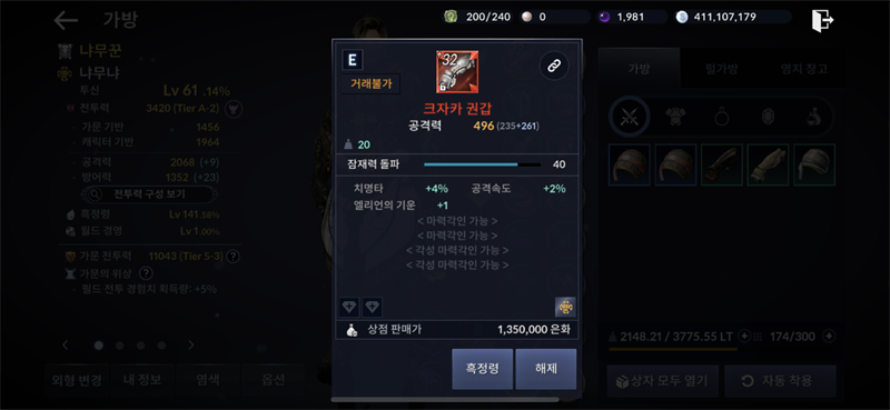 그러게요 ㅋㅋ 크자가 권갑을 레이븐껄로 바꾼다는거 아니에요?? 각성체크같은거 확인해보세요