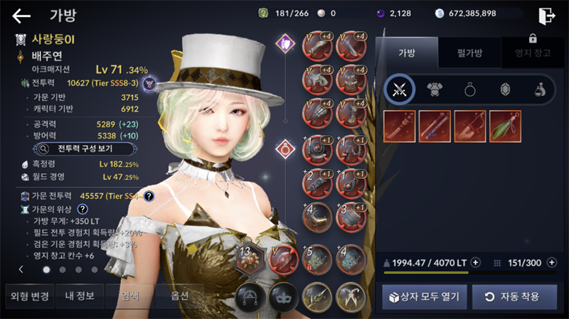 무기 변경권이네...그리고 심연장비 하나 더 필요하네 (클래스 변경 총정리)