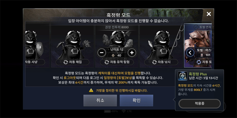 토벌 흑정모드 입장 조건이 머에요?