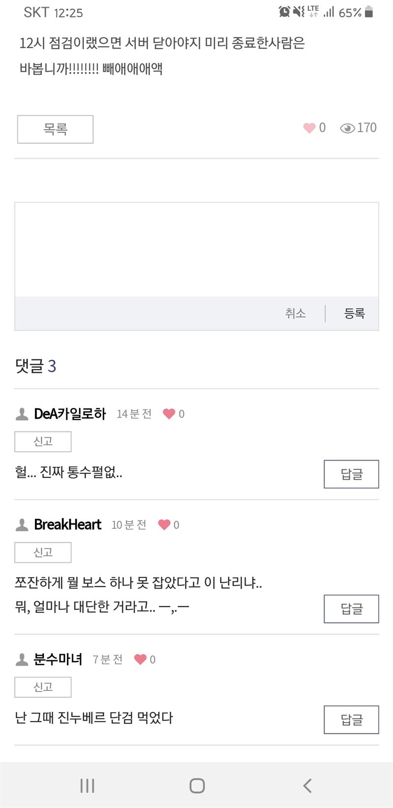 점검 12시로 연장된지도 모르고 아무 생각없이 월보 잡았는디