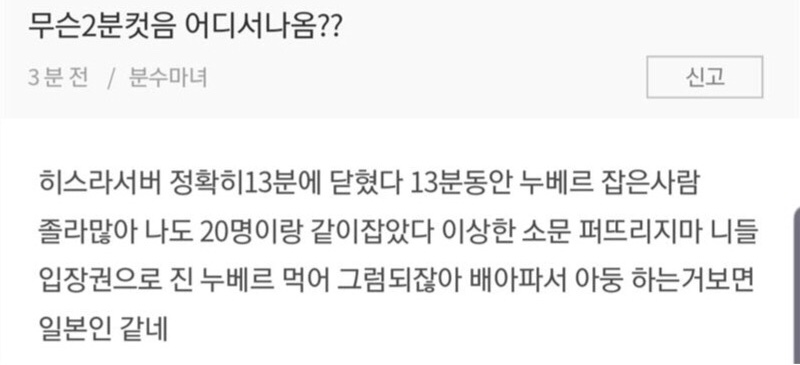 모지란새키가 저기 누가 올린 아이템획득창 스샷에 12시 2분이라고 딱찍혀있드마는 2분컷이 어디서나왔냐하네 선천적으로 덜맹글어져서나왔나 애시키가 모지라네