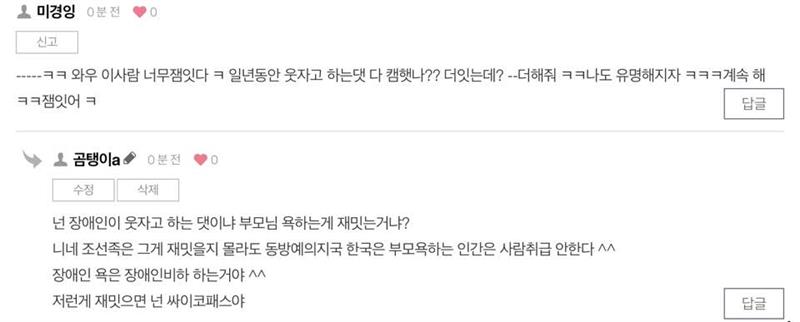 저 조선족이 먼저 저한테 악플 달앗고