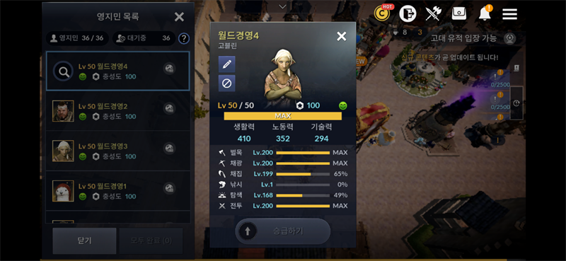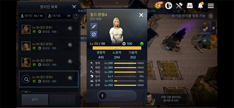 월드경영 영지민 스킬렙끝이보이네요