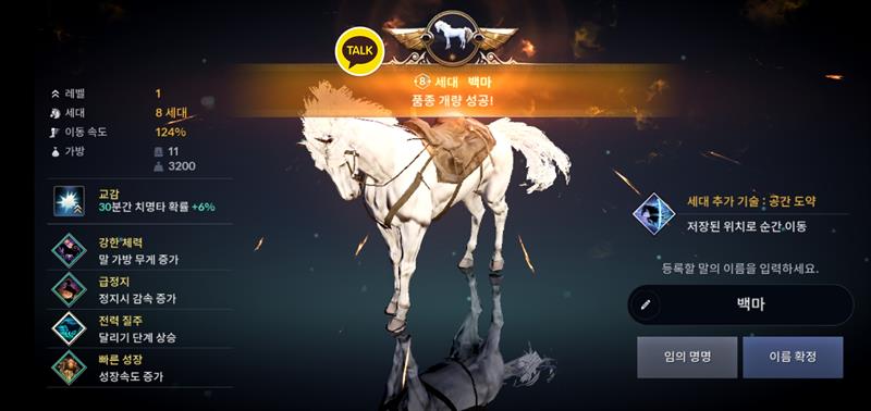 난 7세대 말 합성 첫시도에 8세대 교감 공방 붙은 말 얻고 말 키우기 종료 함