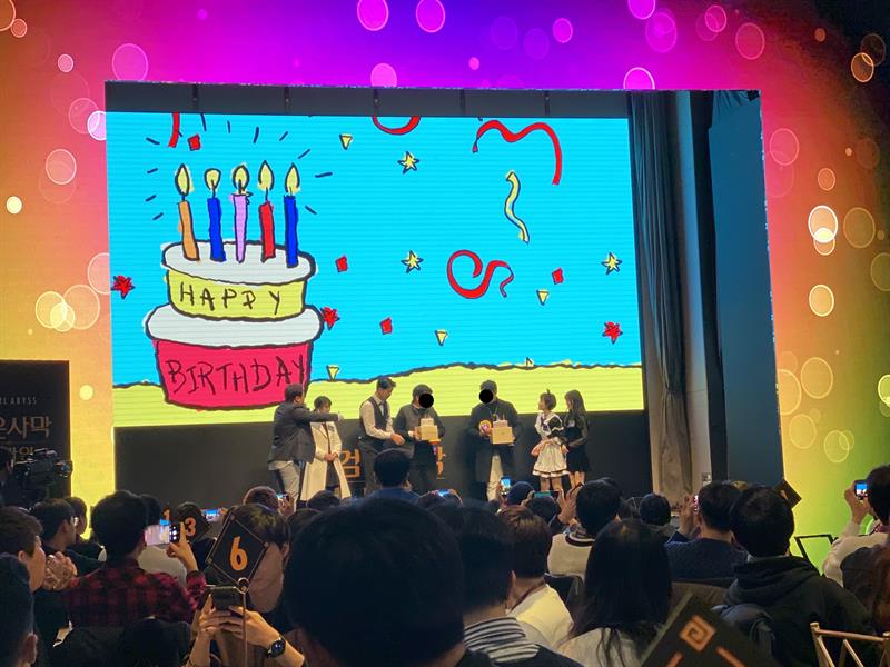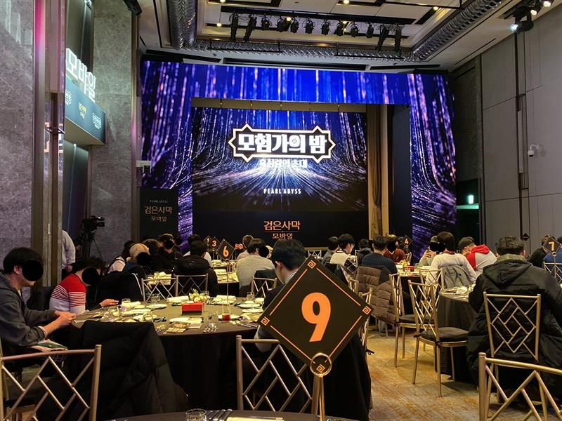 드디어 「모험가의 밤」의 시작되었고 준비된 저녁식사를 시작으로 생일파티(당일 생일이신 분이 두 분이나 되셨고, 펄어비스 측에서 케이크와 선물을 준비했더라구요! 소소하지만 당사자분들에겐 잊지 못할 추억이 되었겠죠!? 저도 3일 전에 생일이었는데... 크흡...ㅋㅋㅋㅋ), 소소한 이벤트, 팀별로 퀴즈 맞추기, 향후 업데이트 안내, 질의응답 등이 진행되었어요.