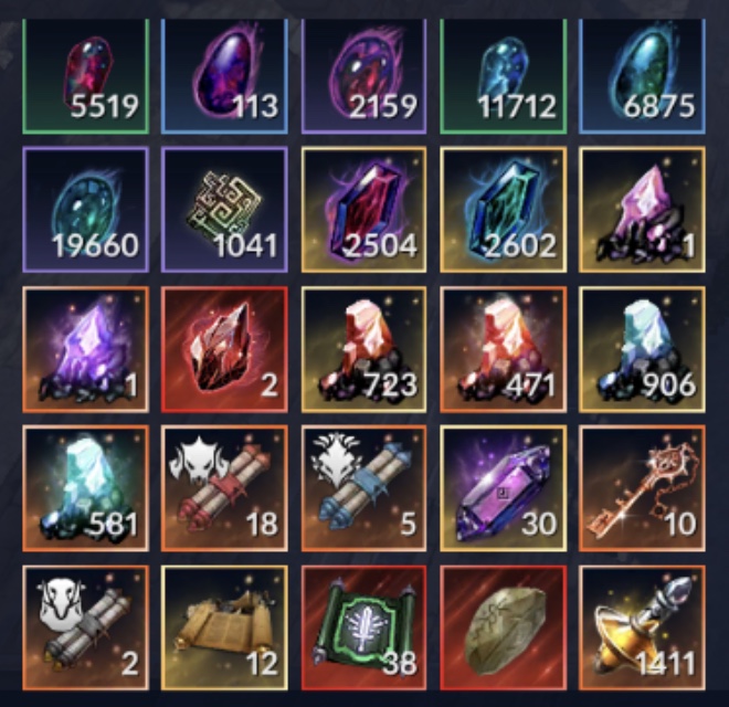 보니까 광원석하고 유물,연금석은 파편은 귀찮아서 안쓴것들이네요 ㅠㅠ 샤카투도..