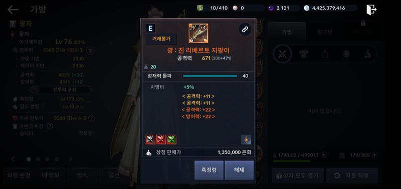 진신화무기를끼고있는데 수정을 나중에 빼면 펄주면서 빼고 심연에