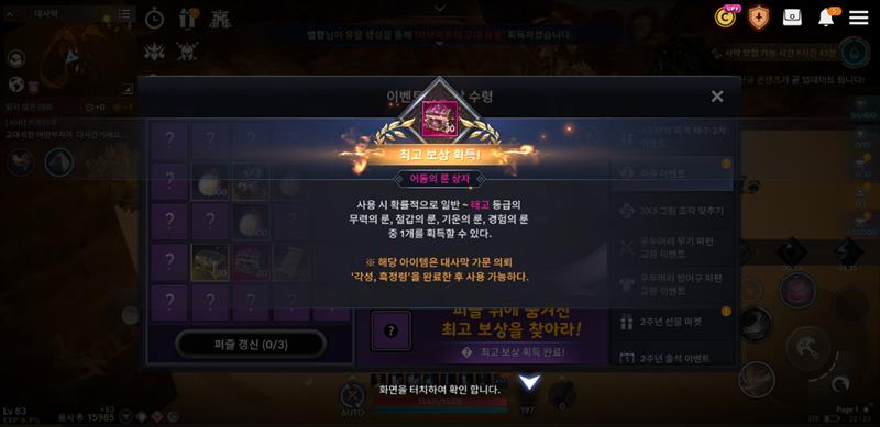 일단 업데이트 이후 퍼즐 1티어 보상이 뭔지 알기 전까진 존버했다가 하둠룬이 무과금한테는 1티어 보상이라고 해서 바로 하둠룬 상자 퍼즐 깡을 시작함.
