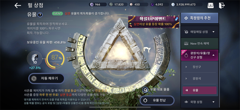 1 드디어 유물 확률업 이벤트라니 ㅂㄱㅂㄱ 45만개 언제쓰냐 근데
