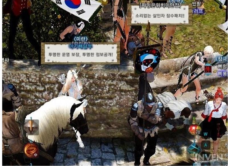 이건 몇년전 피씨 사막 인벤기사이긴 한데 이때는 장비 히든 옵션 공개 문제 문제 때문에 하이델 유저들이 태극기 들고 운영진에게 단체 시위 했었던 적이 있음 . 이때 운영 방식 보면 지금 모바일처럼 사태해명 안하고 뻐팅기는 운영방식은 그대로 가져온듯 ㅋㅋ